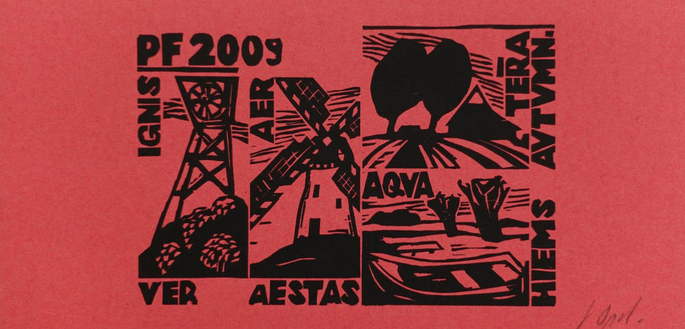 Abkürzung „PF“ für „pour féliciter“ (Glück zu wünschen) und der entsprechenden Jahreszahl, beziehen