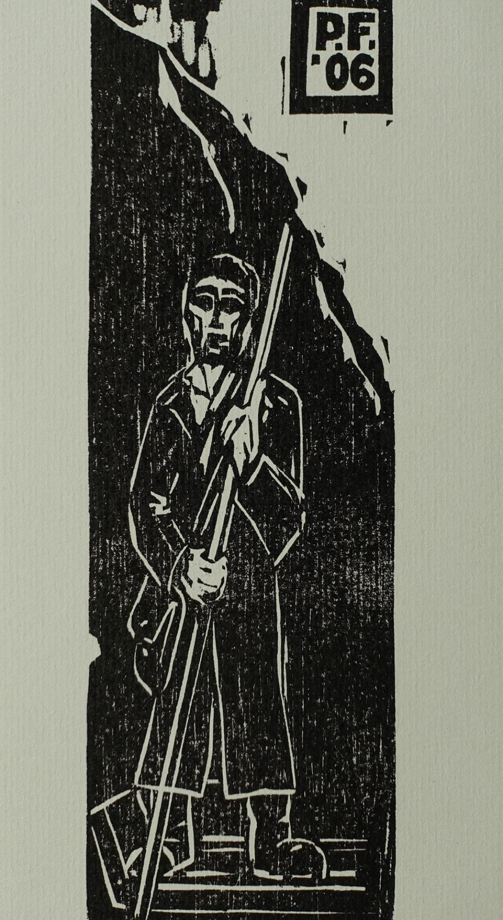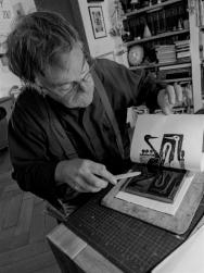 erklären.“ Holz- und Linolschnitte gehören zu seinen bevorzugten Techniken, da sie es ihm ermöglichen,