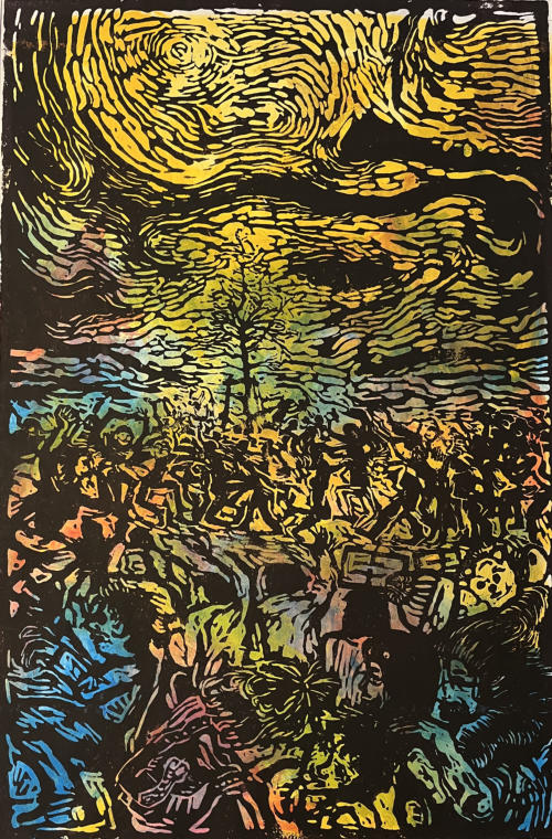 vierfarbiger Linoldruck, 235 x 235 mm, Probedruck,
