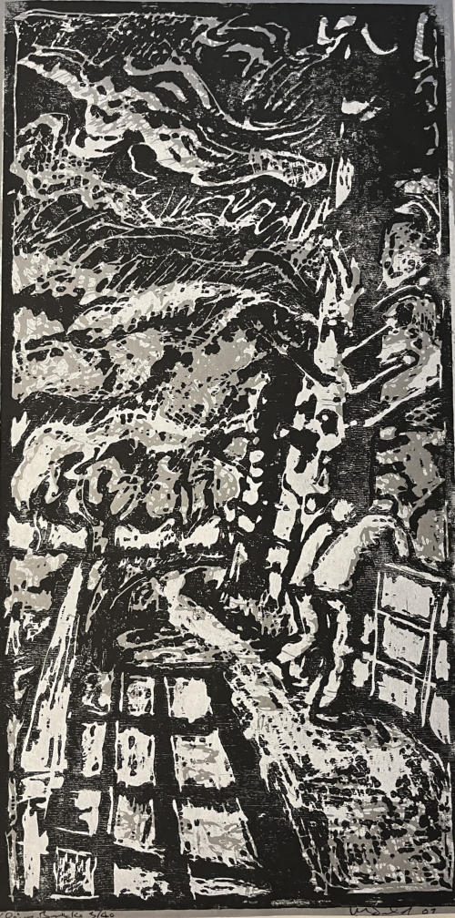 Schwarzweiß-Linoldruck, 250 x 520 mm, 1/2,