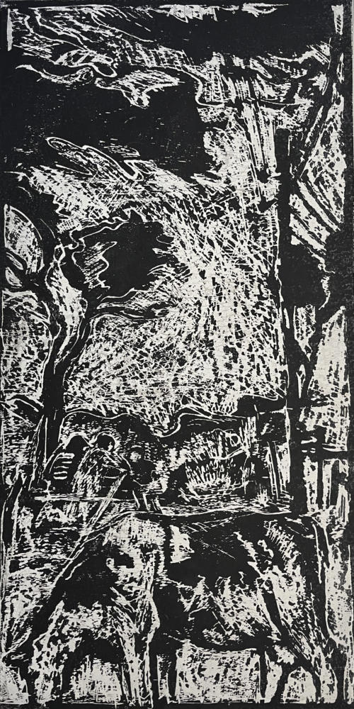 Scharzweiß-Holzschnitt, 780 x 380 mm, 14/35,