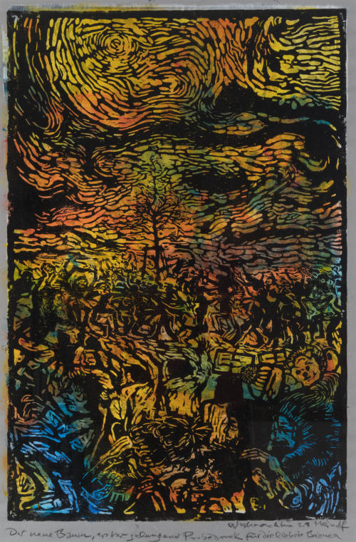farbiger Linoldruck, 600 x 400 mm,