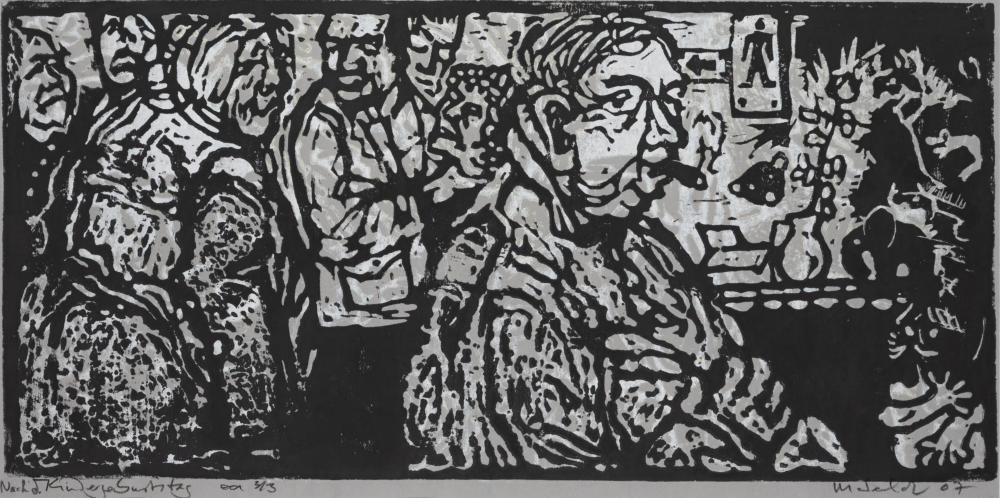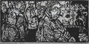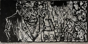 Schwarzweiß-Linoldruck,